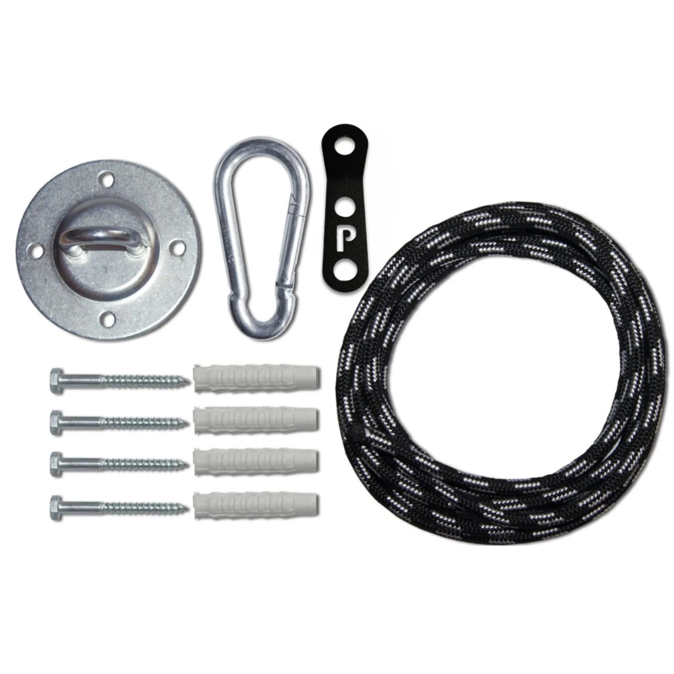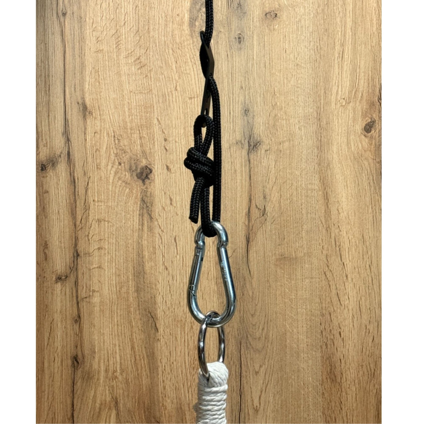 Im Set finden Sie außerdem 1 starken Karabinerhaken, solide Befestigungsdübel mit Schrauben (Montage in Beton und Holz möglich).