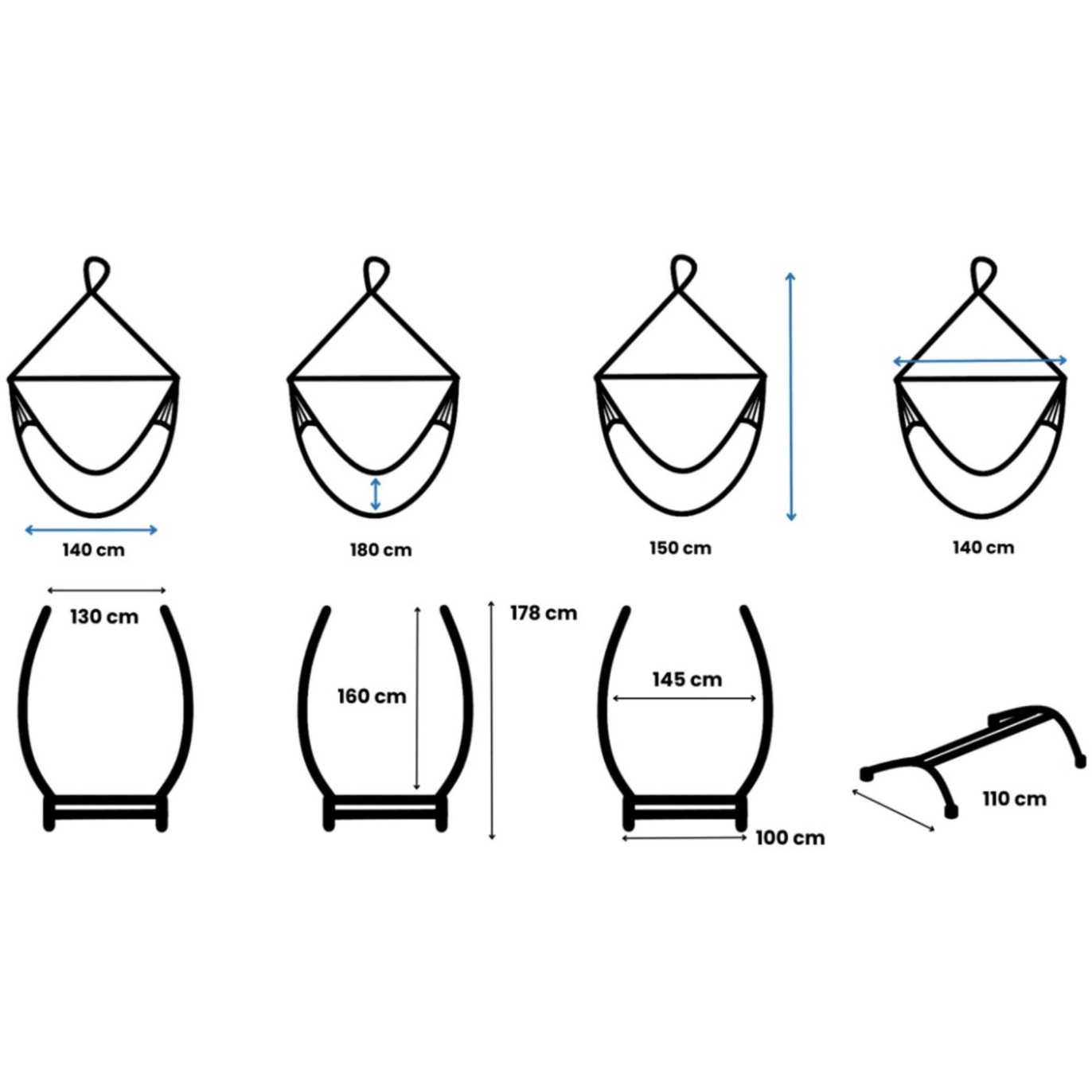 ⭐️Die Garnitur enthält: ein Gestell 140x150x165, eine Hängesessel (180x140cm/ Holzstab 140cm, Belastbarkeit: 160kg), Schrauben, sowie eine klare Montageanweisung.