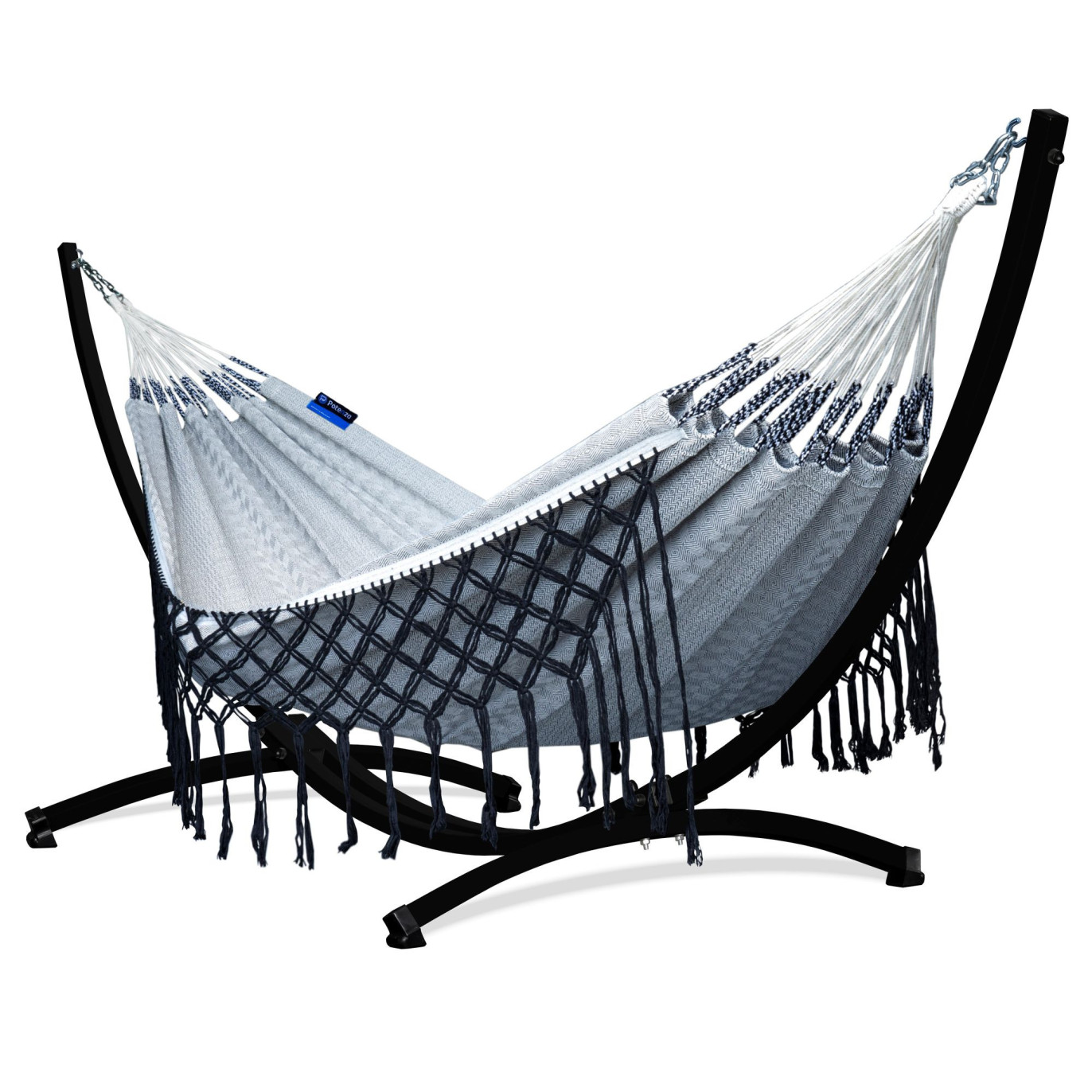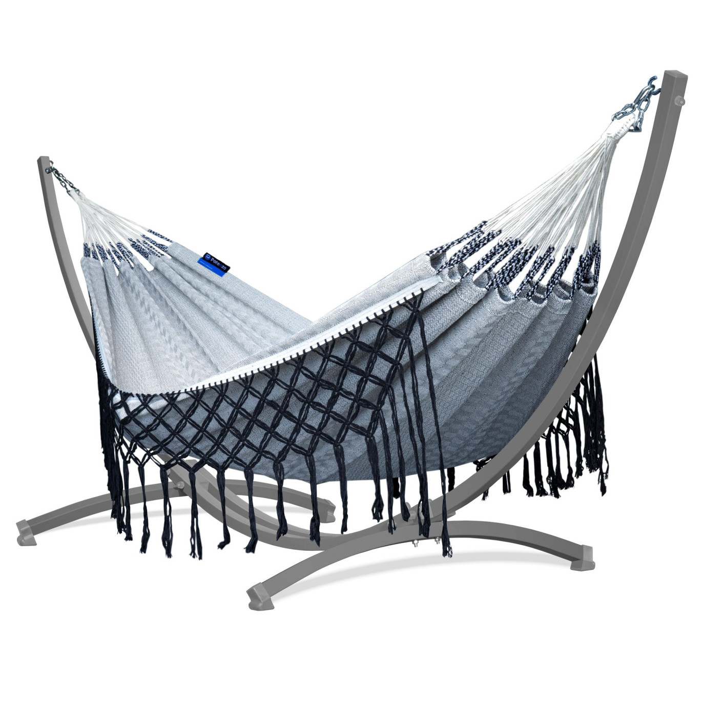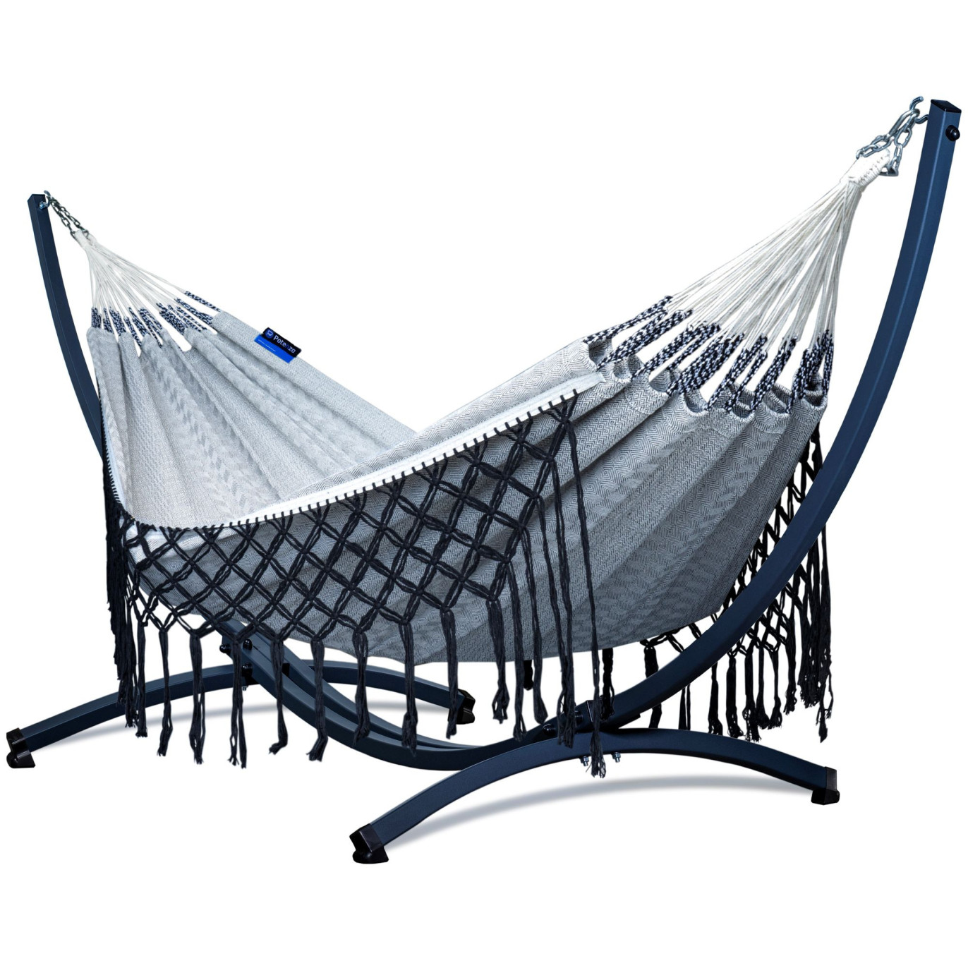 Potenza Hängematte mit Gestell – 220kg für 2 Personen I Boho Medelin Hängematte - 230x160, 200kg I Cocoon - B&W
