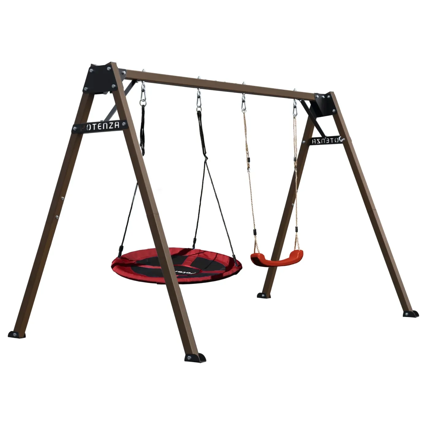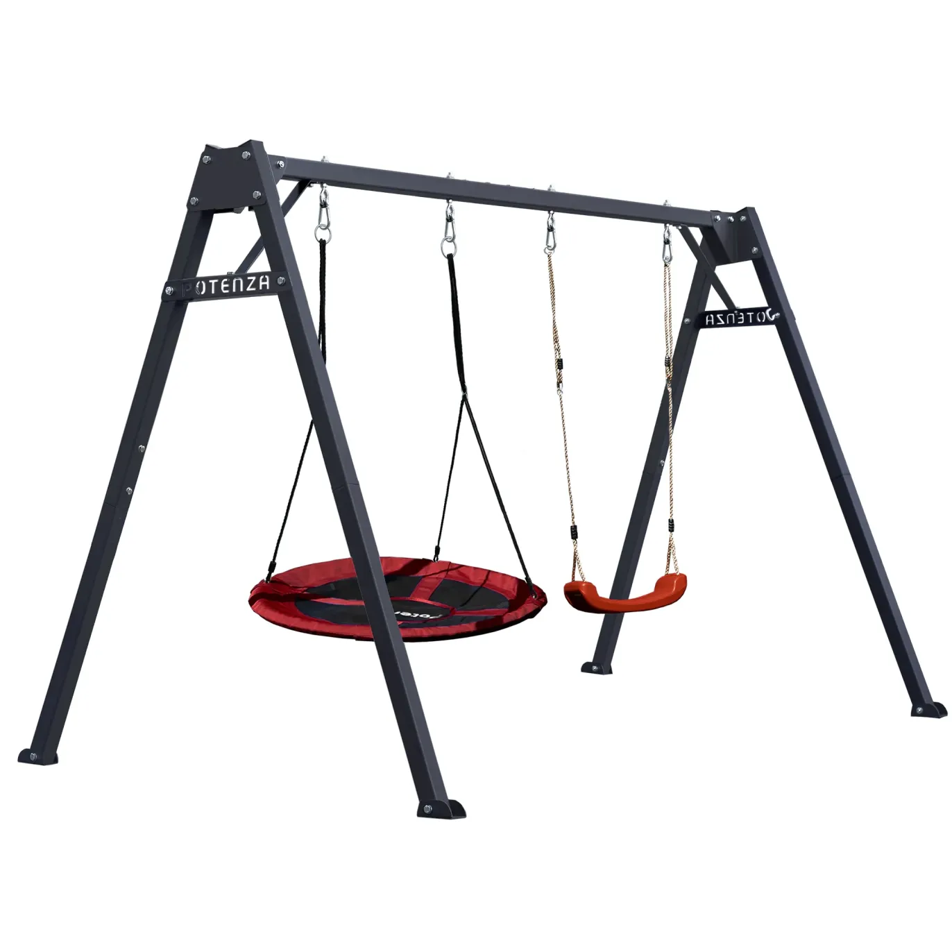 Gartenschaukel mit roter Nestschaukel und Schaukelsitz