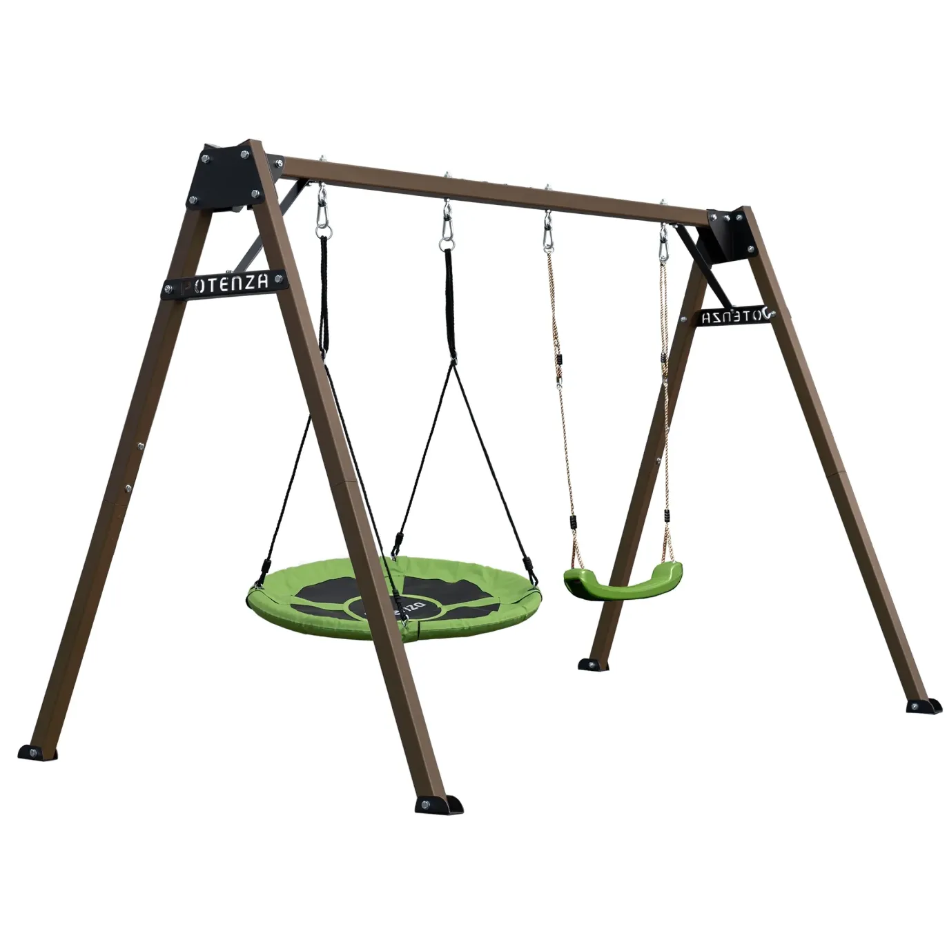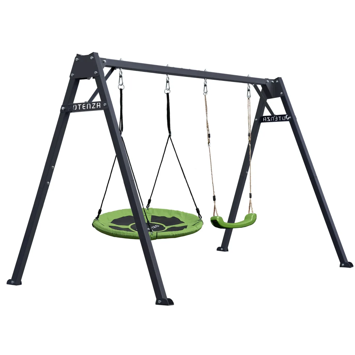 Gartenschaukel mit grüner Nestschaukel und Schaukelsitz